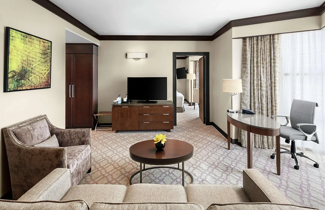 Fasilitas yang disediakan di setiap kamar termasuk kulkas mini bar, mesin pembuat teh/kopi dan brankas pribadi. 676 kamarnya tersebar di 41 lantai.